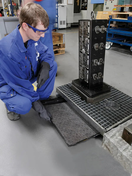 Koneiden alustaksi, tippahävikin keräämiseen, huoltotöihin. Estää öljyjen ja nesteiden leviämisen tuotantotiloissa.