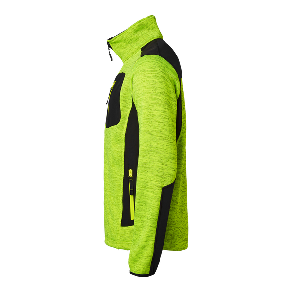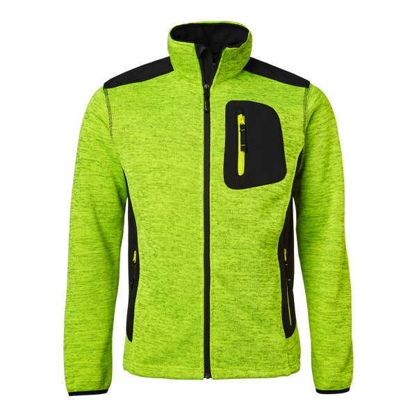 Top Swede neulottu fleecetakki softshell-yksityiskohdilla. Takissa on vetoketjullinen rintatasku, kaksi vetoketjullista etutaskua, joustavat hihansuut ja kiristysnauha helmassa varmistaen hyvän istuvuuden ja käytännöllisyyden. Täydellinen valinta rakennus- ja teollisuustyöhön.