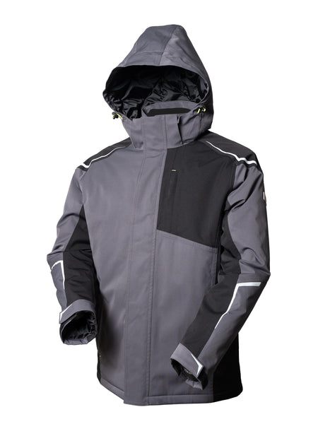 Harmaa/musta väritys yhdistettynä heijastintehosteisiin tekee takista sekä modernin että turvallisen pimeässä liikuttaessa.